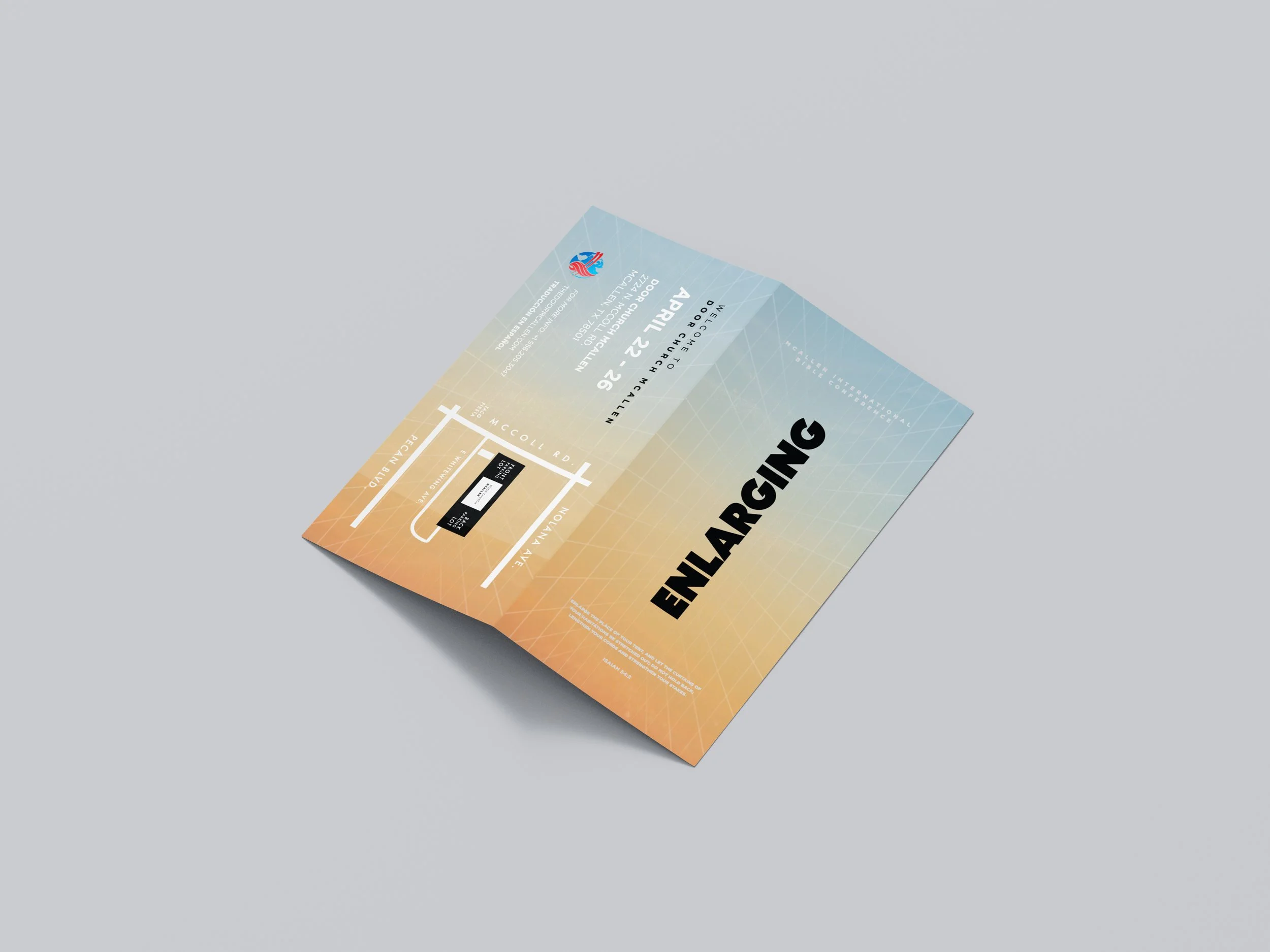 Bible Conference: Enlarging is an international conference hosted by the Door Church in McAllen, Texas. This international conference hosts up to 1,000 guests every year. The theme of this conference was Enlarging. The deliverables for this project included digital graphics, printed brochure, signage and a social media campaign.