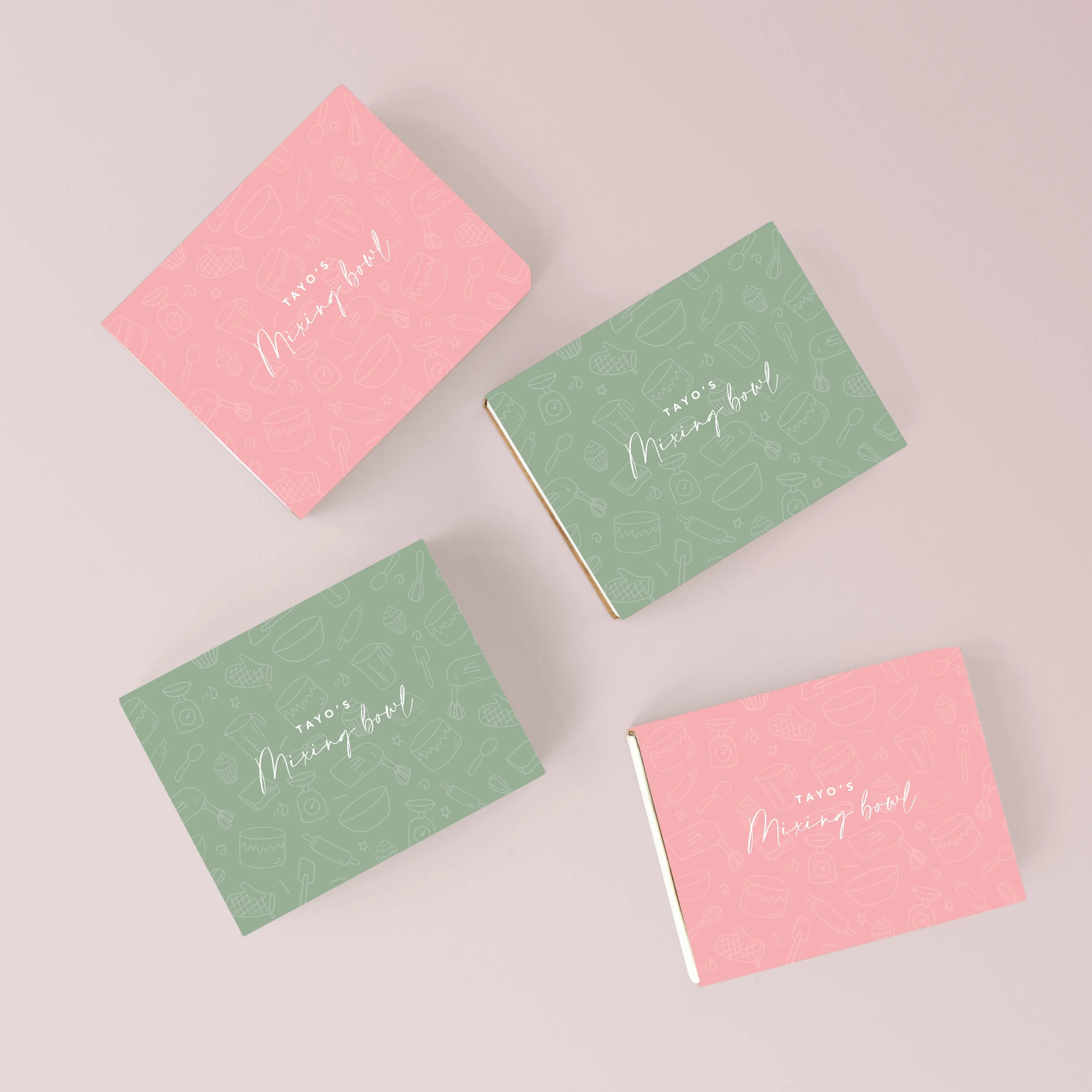 Tayo’s Mixing Bowl is a bakery in London, England who believe that tasty indulgences are meant to be shared. Their motto is to deliver precious moments to everyone and “Send love in a box.” This project included logo, brand, package design, custom pattern and signage.